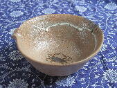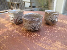 | あるとき、銀座で会合があり、開始まで時間があるので黒田陶苑を覗いた。1階で、唐津焼を見つけた。素朴で力強い。しかも値段が3000円前後と驚くほど安い。後日再び訪ね、作者のことを聞いた。盆出哲宣。何と埼玉の坂戸の人だという。住所までは教えていただけなかった。坂戸を車で走り、窯らしきものを探した。鶴ヶ島駅前のギャラリーに過去に出品したことがあり、問い合わせると親切に電話番号を知らせてくれた。訪れると、へんぴな物置のような小屋で作陶している青年だった。特に唐津に惹かれている。黒田には自分から持ち込んだのだという。何点が購入し、弊店で取引を始めさせていただいた。その後、盆出さんは千葉に移り、唐津以外にも挑戦している。若手の有望株である。何事も好きで集中すれば、認められる。 | ||
