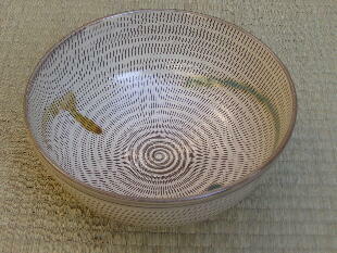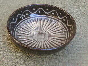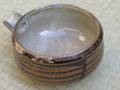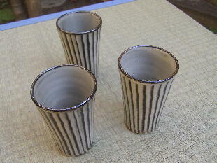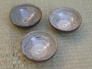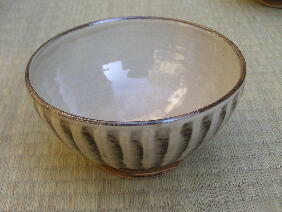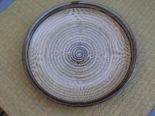 | 福岡県の大分寄り、大分自動車道杷木インターから約30分登り、霊山、英彦(ひこ)山の麓に小石原があります。集落内には、茶陶の高取焼の窯もありますが、小石原焼は、少し離れた小鹿田(おんだ)焼に似て、甕、皿、鉢、碗など、生活雑器類を主とする民陶です。飛び鉋(かんな)、刷毛目(はけめ)などの、独特の装飾、文様はごらんになったことがあるでしょう。ほとんどの窯元は、伝統技法で、製作を続けており、そのことが小石原焼に素朴さとともに他にない品格を与えているように思われます。 小石原集落の街道沿いに「道の駅小石原」という施設があり、そこに約50の窯元作品が一堂に陳列してあります。私はそれをすべて見せていただき、実際に訪ね、結果として1軒を選ばせていただきました。それが、当ギャラリーでお付き合いいただいている、鬼丸豊喜さんです。鬼丸さんは昭和35年、小石原の生まれですが、生家の家業は焼き物ではありません。なぜ焼き物を始めたかと聞くと、「ここでは他に仕事がありません」と正直に答えてくれました。作陶姿勢は、「昔のまま行きたい」とのこと。コーヒーカップや傘立てなど、作品のバラエティは広がっていますが、「刷毛目と飛び鉋が入らないものはやらないようにしている」と、かたくなまでに伝統に忠実です。 とは言え、鬼丸さんの作品には、形にも文様、色合いにも都会生活ともマッチする機能性、感覚が備わっています。現代に生きる伝統です。価格も手ごろで、鬼丸作品で小石原の伝統を見直していただければ幸 いです。 |