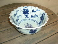 | 成型して素焼きした磁器に、呉須という青色の染料で絵付けをして焼いたものを「染付け」と言います。藍と素地の白だけの製品となります。有田は日本で初めて磁器が焼かれたところですが、初期のころはこの染付けが主に作られました。